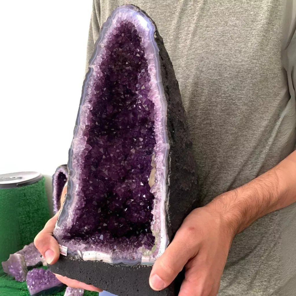 Esta capela única combina a profundidade e o brilho da Ametista de qualidade extra com a delicadeza das inclusões naturais de Calcita. Uma verdadeira joia mineral originária do Brasil, lar das melhores Ametistas, ideal para quem busca uma peça que une sofisticação, energia positiva e originalidade.