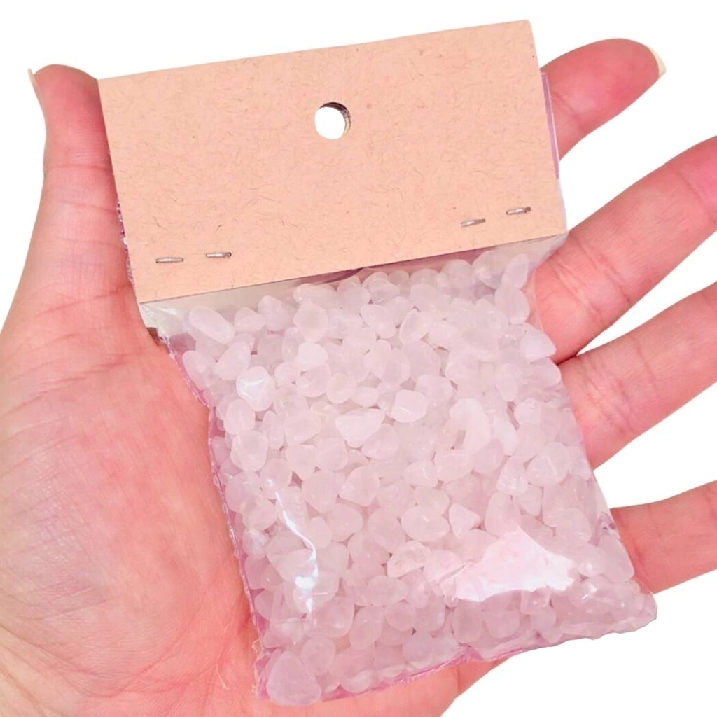 Saquinhos de Cascalho de Quartzo Transparente com 100 gramas.