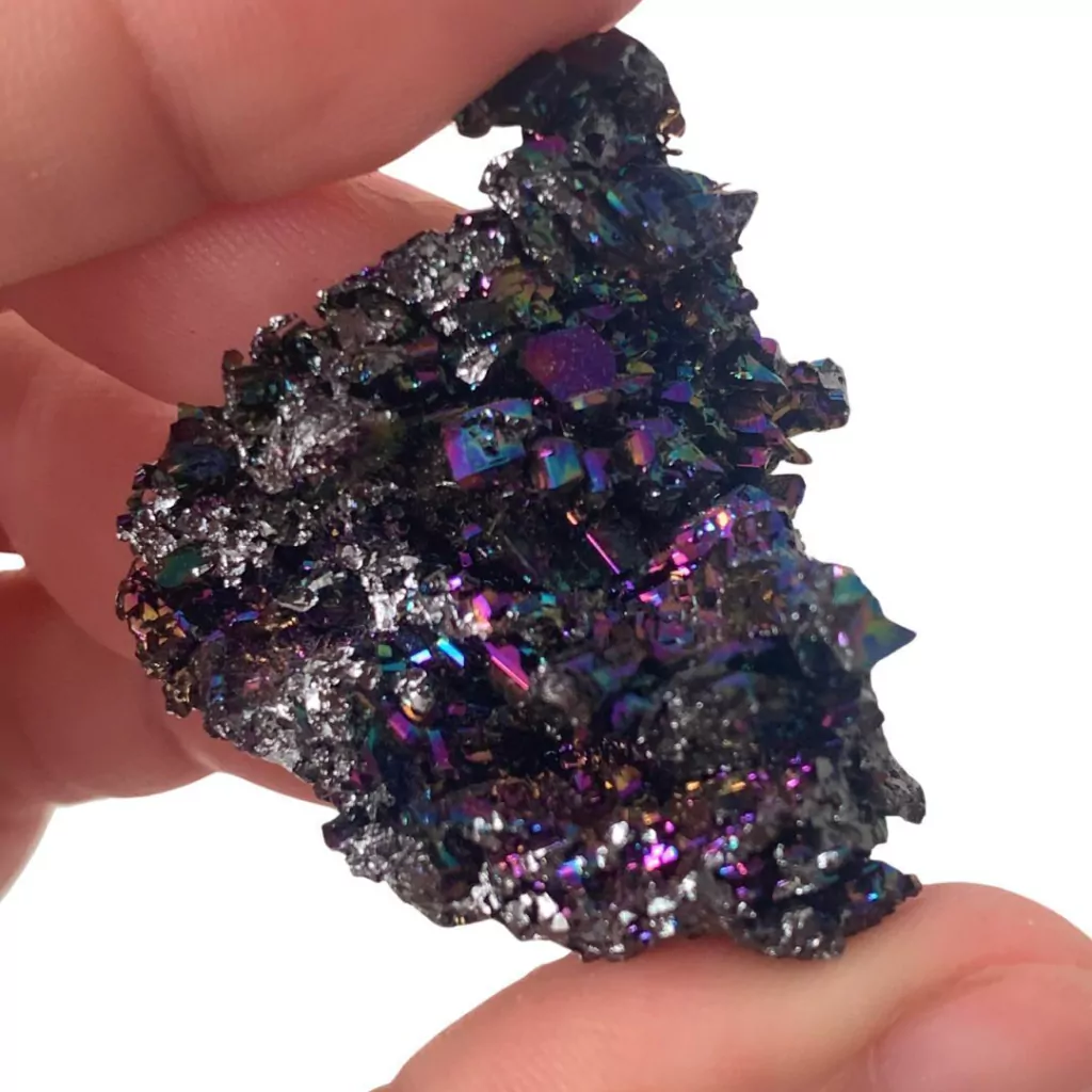 O Silício Arco-Íris é uma obra-prima criada em laboratório que une ciência e arte em um cristal de beleza estonteante. Embora não seja formado naturalmente na Terra, sua origem tecnológica não diminui seu valor; ao contrário, ele representa um marco da criatividade humana e da inovação científica. Com tons vibrantes que refletem um espectro completo de cores, este cristal é uma peça única, valorizada tanto por sua estética quanto pelo seu significado simbólico.